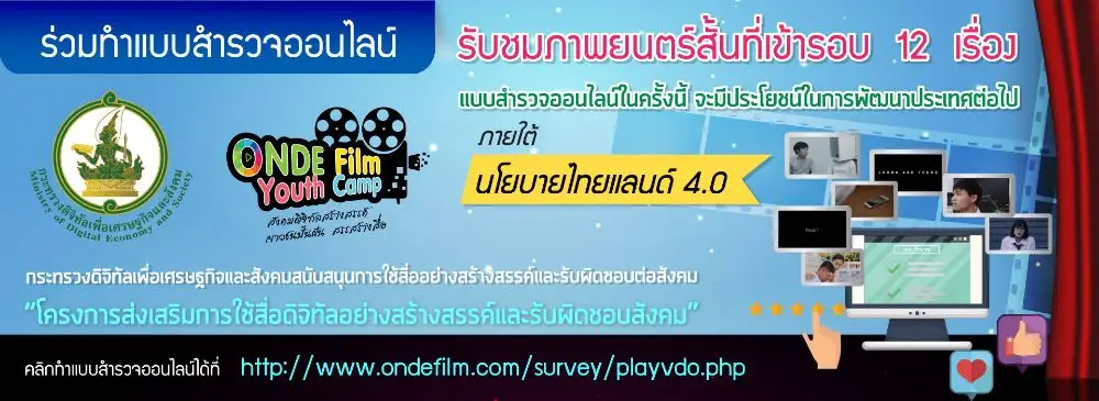 ขอเชิญชวนผู้ที่สนใจร่วมทำแบบสำรวจหนังสั้นในโครงการ ONDE Film Youth Camp