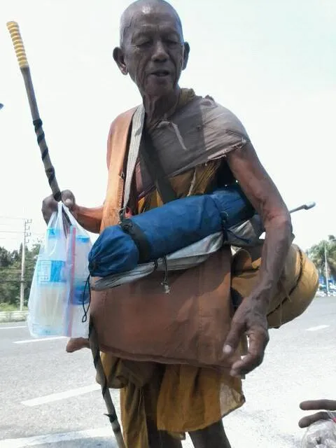 แล้วผมก็ถามว่า ท่านมาจากที่ไหน พอท่านตอบถึงกับ อึ้งครับมาจาก จ.หนองคาย ตั้งแต่ออกพรรษา พอถามว่าท่านจะเดินไปที่ไหน ท่านตอบว่าไม่มีจุดหมายเข้าพรรษาวันไหนจะจำวัด ที่วัดที่ใกล้ที่สุด ท่านตอบแบบนี้จริงๆ และสิ่งที่ผมแปลกใจเป็นที่สุดคือ ท่านมองผมแล้วท่านบอกกับผมว่า โยมมิตรแท้ของโยมหายากนะ โยมที่ผ่านมาโยมทำคุณกับคนไม่ขึ้นนะ