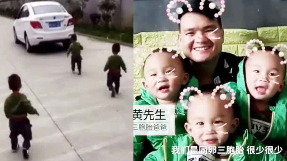 เมื่อเร็วๆนี้ มีคลิปวิดีโอที่แสนอบอุ่นระหว่างพ่อลูกในเมืองเส้าซิง มณฑลเจ้อเจียง เป็นเรื่องราวของนายหวง ปะป๊าคนหนึ่งที่กำลังขับรถออกจากบ้านไปทำงาน แต่มีลูกชายแฝดสามวัย 1 ขวบวิ่งตามรถอย่างไม่ลดละความพยายาม จนนายหวงต้องหยุดรถเพื่อมากอดลูกชายทั้งสามของเขาด้วยความรักความเอ็นดู นายหวงเล่าว่า “ถึงแม้ว่าการทำงานจะมีแรงกดดันมาก แต่ทุกวันแค่ได้มองเห็นพวกเขาก็มีความสุขมากแล้ว”