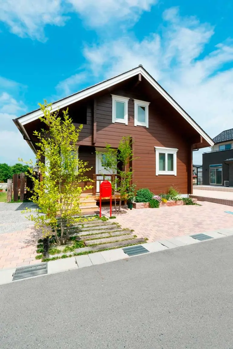 นี่คือแบบบ้านสวยจากประเทศญี่ปุ่น ออกแนวคันทรี่ มาพร้อมกหับโครงสร้างไม้ชั้นเยี่ยมจากฟินแลนด์ ตัวบ้านออกแบบให้เป็นลักษณะชั้นครึ่ง ยกสูงเล็กน้อย หลังคาทรงจั่วธรรมดา ภายนอกตกแต่งด้วยโทนสีดำตัดกับขอหน้าต่างประตูสีขาวดูลงตัวมากๆ รอบๆ ตัวบ้านถูกออกแบบได้น่าอยู่มากๆ มีทั้ง เฉลียงเล็กๆ ที่ด้านหน้า ด้านข้าง ที่ดูน่ารักน่าพักผ่อน