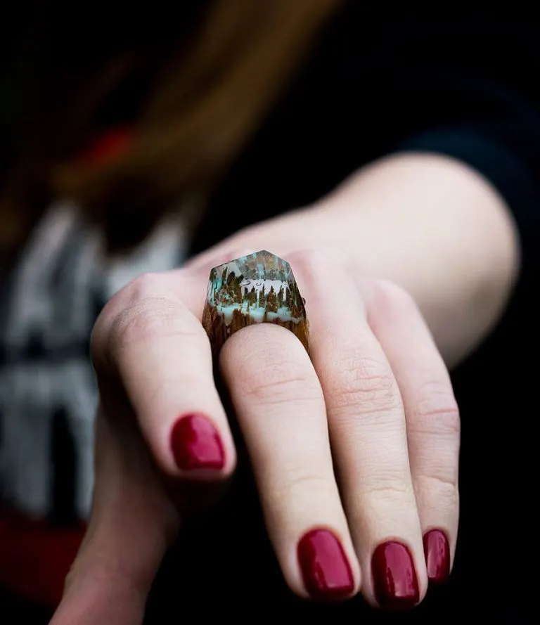บริษัท Secret Wood ในประเทศแคนาดา สร้างแหวนไม้ที่มีความพิเศษสุดๆ ด้วยการใส่ความเป็นธรรมชาติเข้าไปในแหวน ไม่ว่าจะเป็นดอกไม้ หรือกระทั่งภาพของภูมิทัศน์ที่มีมนต์ขลัง เก็บซ่อนความไว้ภายในคงอยู่อย่างนิรันดร์ โดยการออกแบบนั้นได้แรงบันดาลใจมากจาก ช่วงเวลาที่เต็มไปด้วยสีสันในช่วงฤดูร้อน ไมว่าจะเป็นดอกไม้ คลื่น หิมะ และอื่นๆ อีกมากมาย สีสันนั้นก็สดใสแตกต่างกันไป