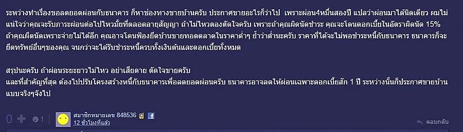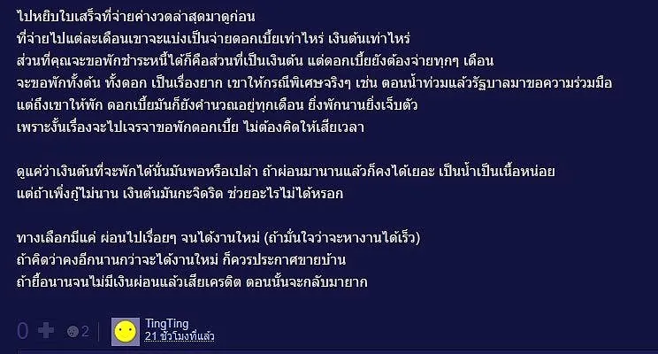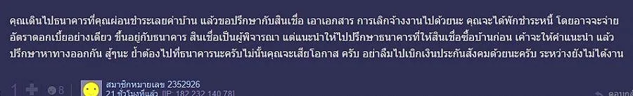สมาชิกเวบไซต์พันทิปตั้งกระทู้ถามกำลัง ผ่อนบ้านอยู่ แต่กำลังจะตกงาน ธนาคารสามารถช่วยเหลืออะไรเราได้บ้าง โดยระบุว่า