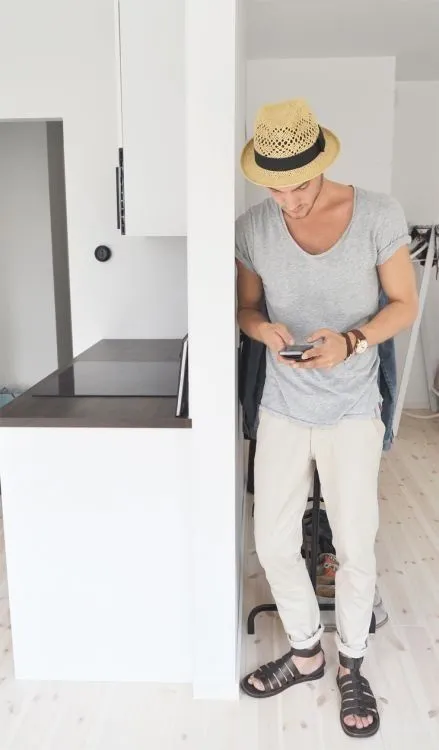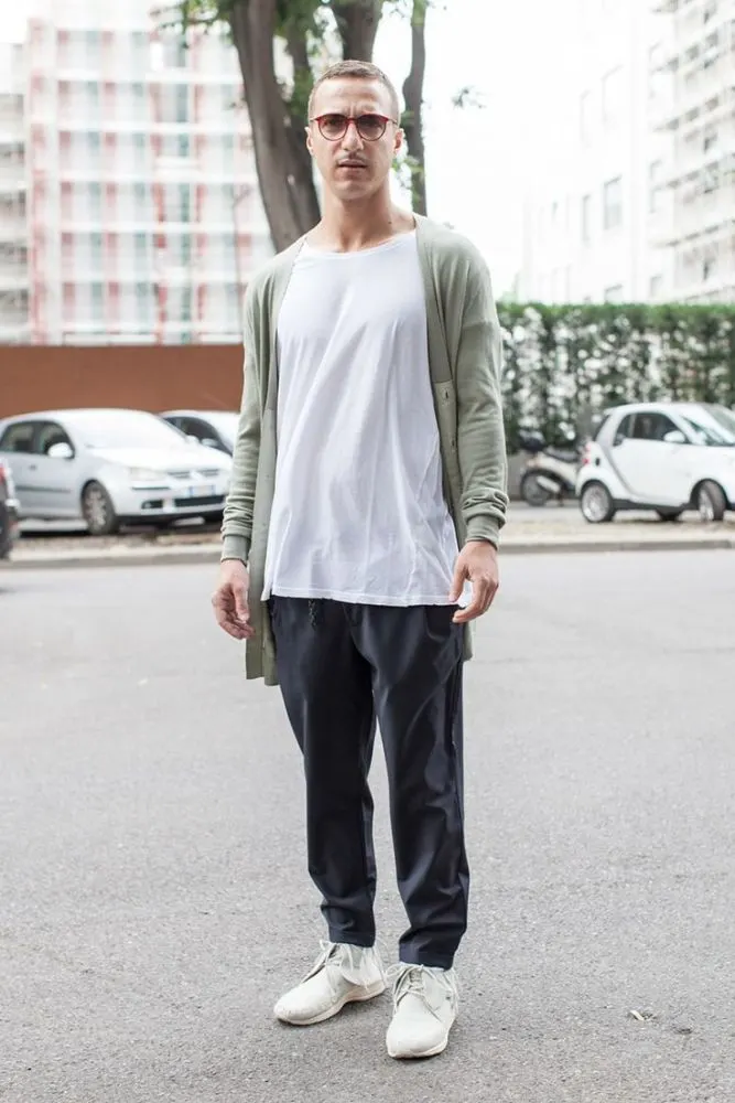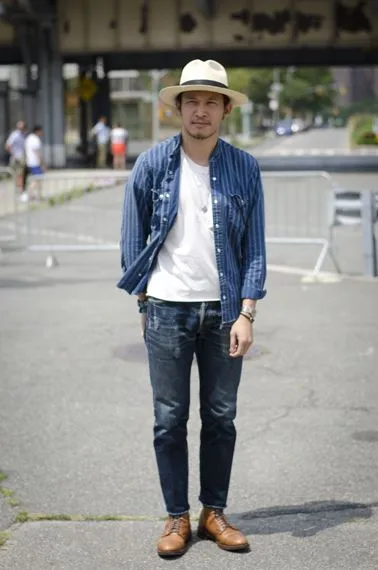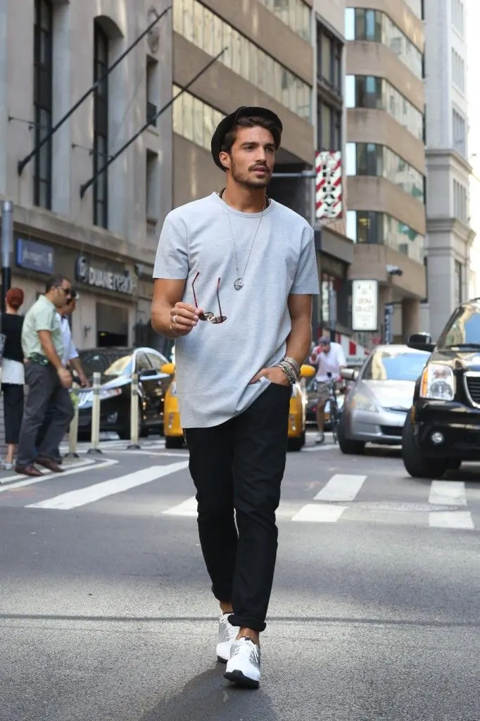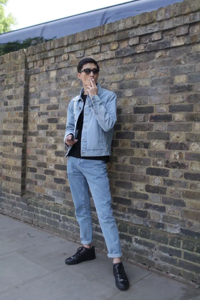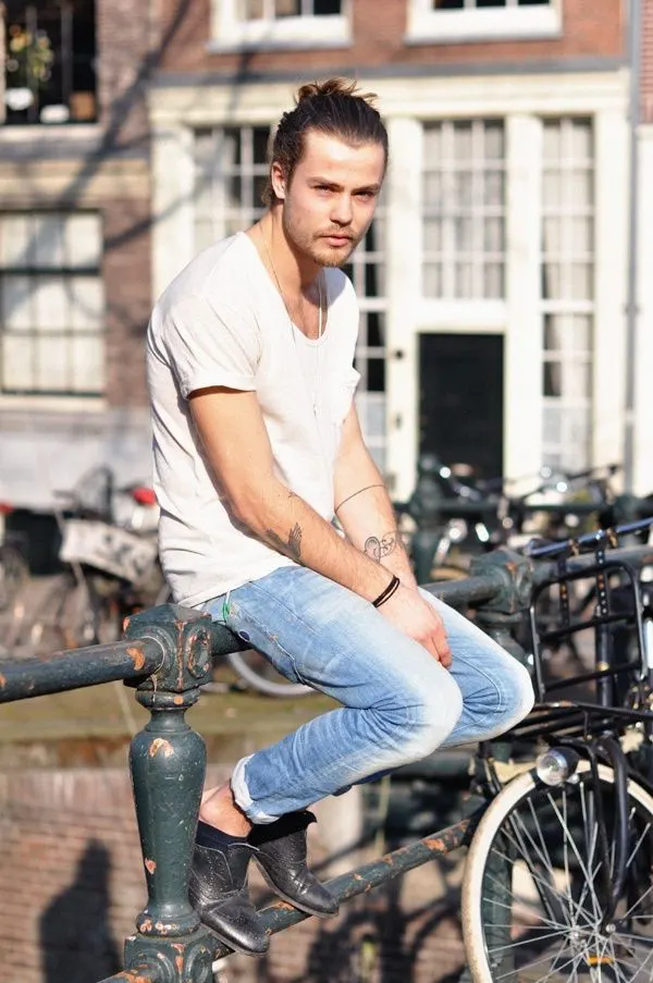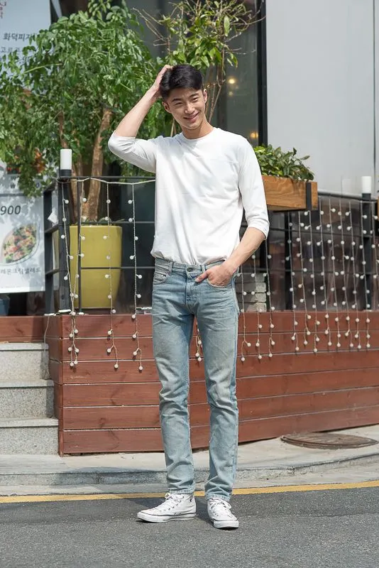 เป็นการแต่งตัวที่เบสิคสุดๆ แค่คุณมีกางเกงยีนส์ดีไซน์ดีๆ เนื้อผ้าดีๆสักตัว จะใส่ไปไหนก็หล่อ สีฟอกซีดแบบนี้ก็เท่แบบเซอร์ๆได้ ส่วนเสื้อถ้าจะให้ดีก็ควรเป็นสีขาว สีเทา Top dye หรือสีดำไปเลย ใส่ง่ายได้ตลอด แถมเข้ากับกางเกงยีนส์ทุกสีเฉดอีกต่างหาก โทนสีเสื้อผ้าก็เป็นสิ่งสำคัญที่หนุ่มๆต้องให้ความสำคัญนะ พอยิ่งเราแต่งตัวเบสิคมากๆ แต่ถ้าโทนสีดีแบบ Total look ก็ทำให้คุณดูหล่อ มีสไตล์แล้วล่ะ