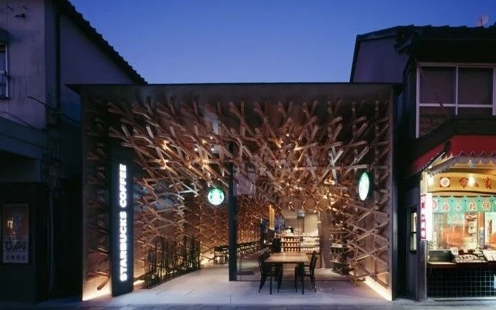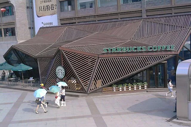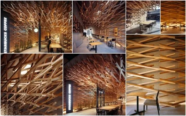 อันดับหนึ่ง เป็นการออกแบบ Starbucks ที่ดูแปลกตาและน่าทึ่ง โดยการใช้ไม้มากถึง 2,000 ท่อน ตกแต่งภายในให้มีลักษณะเป็นรูปของรักนก จนได้รับการยอมรับว่าเป็นอีกหนึ่งในสาขาสวยที่สุดในโลกเลยทีเดียว