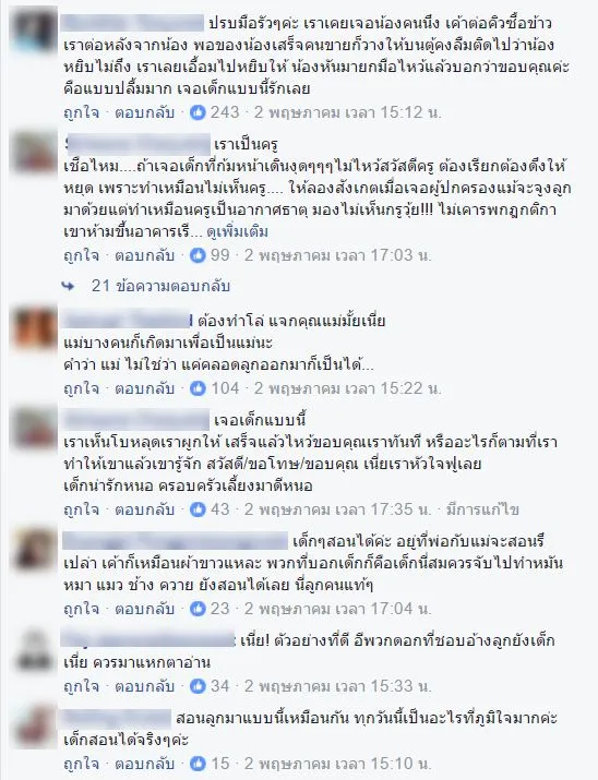 ชาวเน็ตแห่แชร์ เรื่องราวของสาวรายหนึ่งที่เล่าประสบการณ์การพบเจอเรื่องราวสุดประทับใจจนชาวเน็ตปลื้ม เกี่ยวกับการสอนมารยาทลูกน้อยของคุณแม่ หลังจากที่ได้ไปทานข้าวในร้านอาหารแห่งหนึ่ง ผ่านทางเพจ ลูกคุณไม่ได้น่ารักสำหรับทุกคน เกี่ยวกับมารยาทของเด็กน้อยวัย 5 ขวบไว้ จนทำให้ชาวเน็ตแห่ชื่นชมทั้งคุณแม่และลูกน้อย และเรื่องจะเป็นอย่างไรเราไปตามชื่นชมการสอนลูกของคุณแม่ท่านนี้กัน