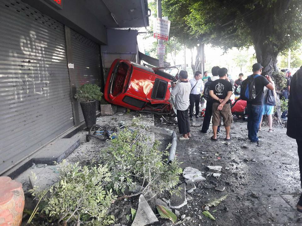 รถยนต์ชนต้นไม้ข้างทาง ก่อนพุ่งขึ้นบนฟุตบาท มีผู้บาดเจ็บ 4 คน ที่ปากซ.ลาดพร้าว97