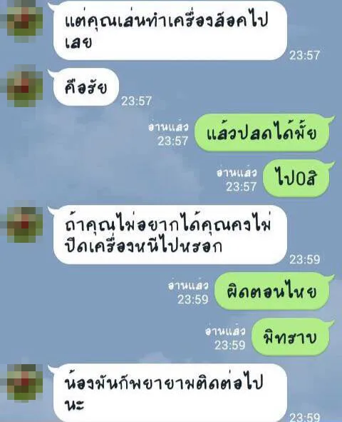 ล่าสุดเกิดเรื่องที่ลูกสาวตำรวจถูกหาว่าอยากได้ของคนอื่นๆ โดยพ่อของสาวคนนี้เป็นตำรวจ มีคนเก็บ iPhone ได้แล้วนำมาให้ตำรวจท่านนี้ ตำรวจท่านนี้ก็เปิดเครื่องรอถึง 3 วัน ก็ไม่มีใครโทรมา จึงได้นำมาให้ลูกสาวช่วยดูให้ เพราะเครื่องติดพาสโค้ด ไม่สามารถเข้าดูรายชื่อเบอร์โทรศัพท์ของคนใกล้ตัวเจ้าของเครื่องได้ ระหว่างนั้นก็มีคนส่งไลน์มาเรื่อยๆ ก็ไม่สามารถจะพิมพ์ตอบกลับไปได้ เพราะติดพาสโค้ดอีกเช่นกัน (ทำไมไม่โทรมานะ?) แล้วจะคุยกันยังงัย? สาวก็เลยลองใส่พาสโค้ดดู ปรากฎว่าเครื่องล็อค เสร็จแล้วจะทำยังงัยล่ะ? สาวเจ้าก็เลยปิ๊งไอเดีย ปิดเครื่อง ถอดซิม เอาซิมไปใส่เครื่องอื่น เพื่อที่จะตอบไลน์ได้ เมื่อนำไปใส่เครื่องอื่นก็กลายเป็นว่าต้องใช้ Line อันใหม่ แต่เบอร์เดิม รอให้ Line มันซิ้งรายชื่อผู้ติดต่อต่างๆ จึงสามารถติดต่อกับพี่สาวของเจ้าของ iPhone ได้ พอคุยกับพี่สาวเจ้าของเครื่องก็นัดแนะเพื่อคืนเจ้าของเสร็จสรรพอย่างดี