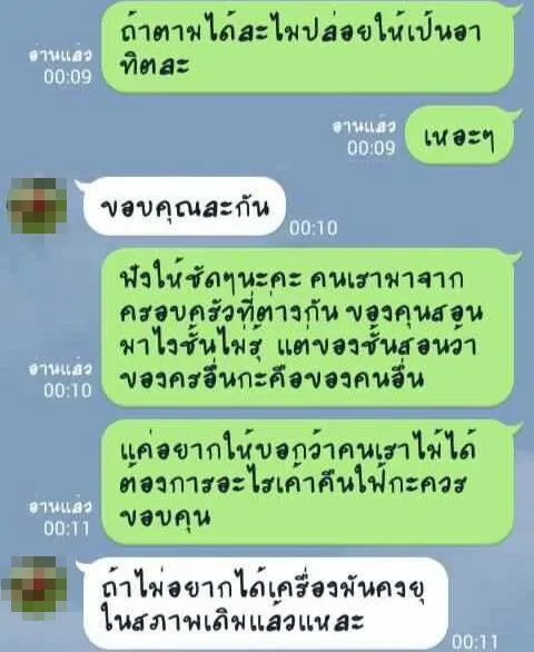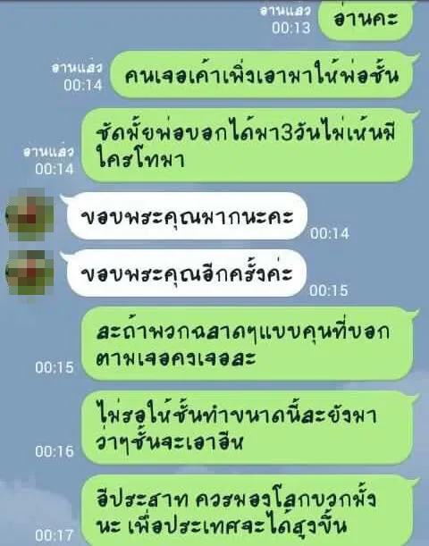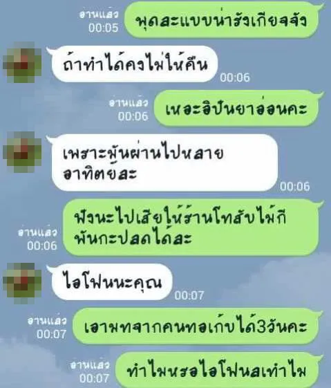 แต่พอเจอเจ้าของเครื่องเท่านั้นแหละบ่นใหญ่ว่าทำไมทำเครื่องล็อค แถมยังไม่ขอบคุณซักคำ จนเกิดปากเสียงกันขึ้น สุดท้ายเจ้าของเครื่องก็ขอบคุณด้วยเสียงน้ำเสียงกระแทก สาวเจ้าจึงอารมณ์เสียปาเคสโทรศัพท์แล้วไล่ไปให้พ้นๆจากหน้าบ้านตน งานนี้ก็เดือดล่ะสิ อุตส่าห์เก็บของส่งคืนกลับต้องมาเจอเรื่องแบบนี้ จึงไลน์หาพี่สาวเจ้าของเครื่องอีกครั้ง บอกให้อบรมน้องสาวเรื่องมารยาทให้ดีๆหน่อย พี่สาวแทนที่จะพูดดีๆ กลับไปหาว่าสาวเจตนาไม่ดี อยากได้ของคนอื่น ซะอย่างงั้น ทั้งหาว่าลบไลน์มั่ง ปิดเครื่อง ทำเครื่องล็อกมั่ง โทรไปไม่รับมั่ง (ช่วงเวลาที่โทรไปแล้วไม่รับ คือก่อนที่ iPhone จะมาถึงมือตำรวจผู้เป็นพ่อ) แถมยังพูดประมาณว่าไม่แคร์ไม่สนว่าจะเก็บได้ส่งคืน เพราะได้แจ้งความไว้แล้วเรื่องที่ iPhone หาย