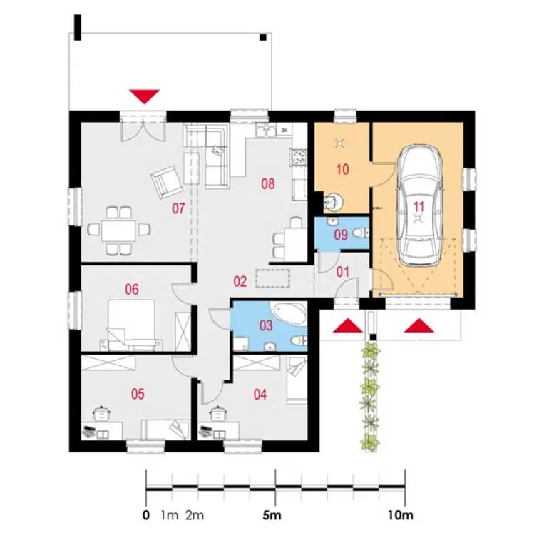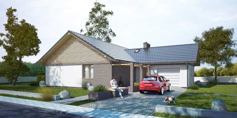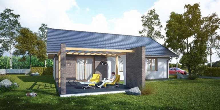 นี่คือแบบบ้านร่วมสมัยชั้นเดียวที่ถูกออกแบบให้มีขนาดกระทัดรัดน่าอยู่ ด้วยรูปทรงตัว L โครงสร้างงานคอนกรีตผสมผสานงานไม้ ที่ดูมีสีสันแปลกตา พร้อมด้วยหลังคาทรงจั่ว ที่เมื่อตัดกันแล้วเข้ากันดีมากๆ ตัวบ้านถูกออกแบบให้มีขนาด 3 ห้องนอนขนาดพอเหมาะ 2 ห้องน้ำ รองรับครอบครัวขนาดเล็กไปจนถึงผู้อาศัย 4-5 คนได้อย่างสบายๆ แบ่งสัดส่วนโซนพักผ่อน ห้องนอน และห้องอาหารแยกกันไว้อย่างลงตัว ภายนอกยังมีโณงจอดรถขนาด 1 คันอีกด้วย