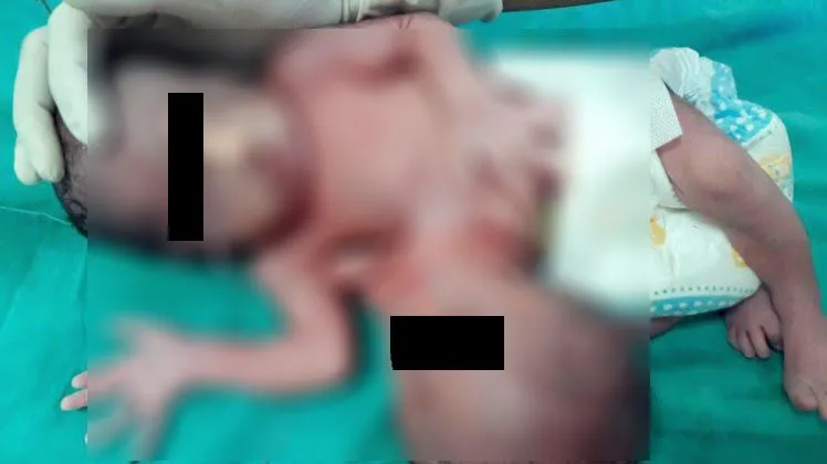แพทย์ในประเทศอินเดียถึงกับตกใจ เมื่อทารกแรกเกิด ออกมาพร้อมกับหัวอีกหัวที่มีตาหูจมูกปาก แถมยังมีมือซ้ายและข้อมือห้อยออกมาจากหน้าอกของหนูน้อยแรกเกิด