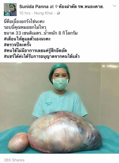 เตือน! สาวๆอย่ากลัวที่จะตรวจภายใน! นี่คือเนื้องอกรังไข่ ขนาดใหญ่มากกกก 33 เซนติเมตร! หนัก 8 กิโลกรัม!!