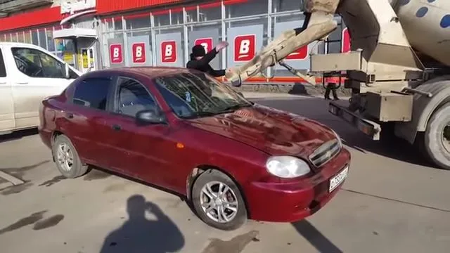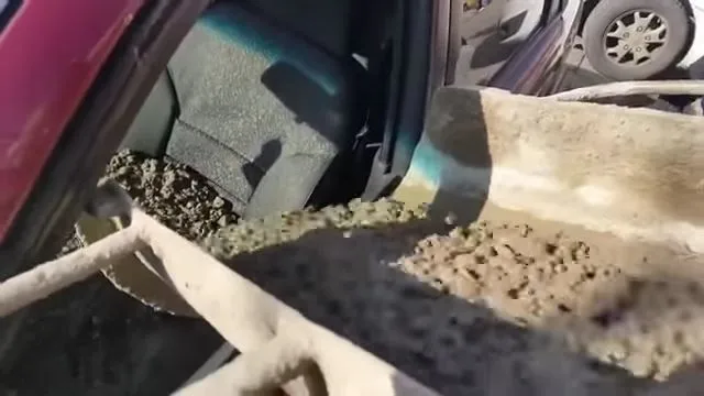 สามีจึงเกิดอาการน้อยใจและโมโหสุดๆ จัดการทำลายรถสุดรักของภรรยาด้วยการเทปูนซีเมนต์ใส่รถหน้าร้าน Veniy ซะเลย
