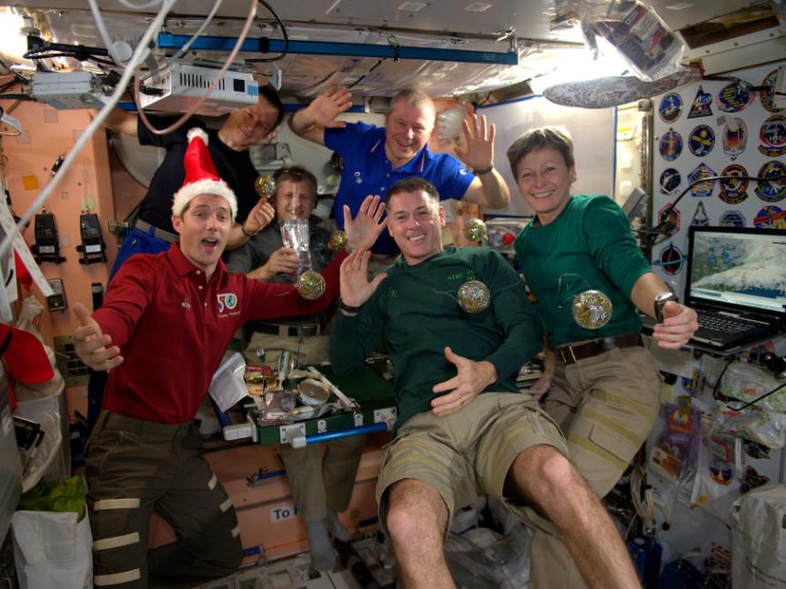 4. นักบินอวกาศของเที่ยวบิน Expedition 50 ฉลองเทศกาลคริสต์มาสและปีใหม่ร่วมกัน อยู่บนอวกาศก็จัดปาร์ตี้ได้เหมือนกัน