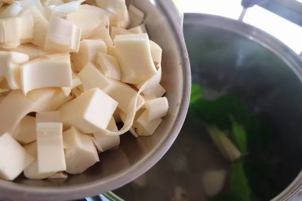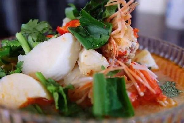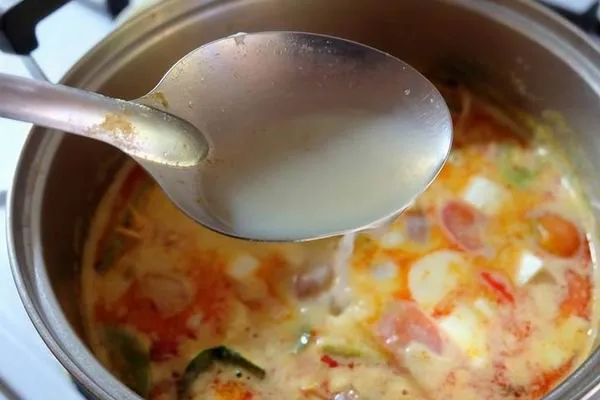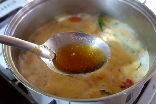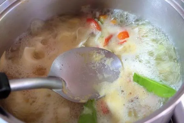 ลดไฟลงให้น้ำเดือดเพียงเล็กน้อย จากนั้นก็ปรุงรสด้วยน้ำปลา