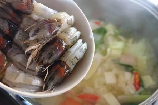 ปล่อยให้เดือดซักพักก็ใส่กุ้งลงไปเลยค่ะ