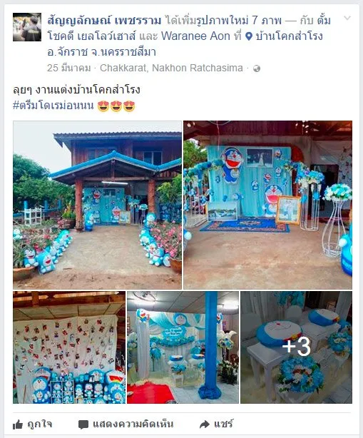 คุณ สัญญลักษณ์ เพชรราม ได้โพสต์เฟซบุ๊คลงรูปงานแต่งแห่งหนึ่งสุดเก๋ไก๋น่ารักมุ้งมิ้งด้วยธีมโดราเอม่อน คนรักโดราเอม่อนเห็นแล้วถึงกับเคลิ้มเชียวล่ะ