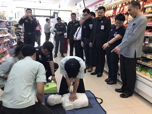 ทั้งนี้หวังว่าผู้ป่วยจะได้รับการช่วยเหลืออย่างทันท่วงที และถูกต้องตามหลักการช่วยเหลือโดยการฟื้นคืนชีพเบื้องต้น (CPR) ประกอบกับการใช้เครื่อง AED ภายในระยะเวลา 4 นาทีหลังจากหัวใจหยุดเต้น เพราะหากช้าเพียงนาทีเดียวจะทำให้อัตราการรอดชีวิตของผู้ป่วยลดลง ซึ่งขณะนี้ ร้านเซเว่นอีเลฟเว่น มีการติดตั้งเครื่องกระตุกหัวใจอัตโนมัติ (AED) จำนวน 2 สาขา โดยสาขาแรกอยู่ที่ สาขาสุนทรโกษา