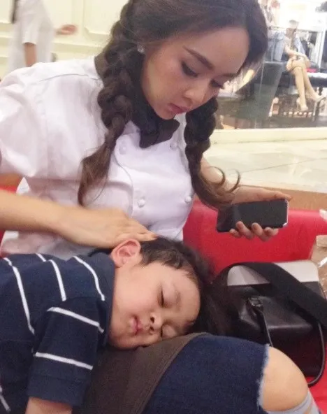 (คลิป) น้องโปรด โชว์ลีลาเอาหัวไถซบตัก อ้อนแม่ เป้ย ปานวาด ขณะขายชีสเค้ก