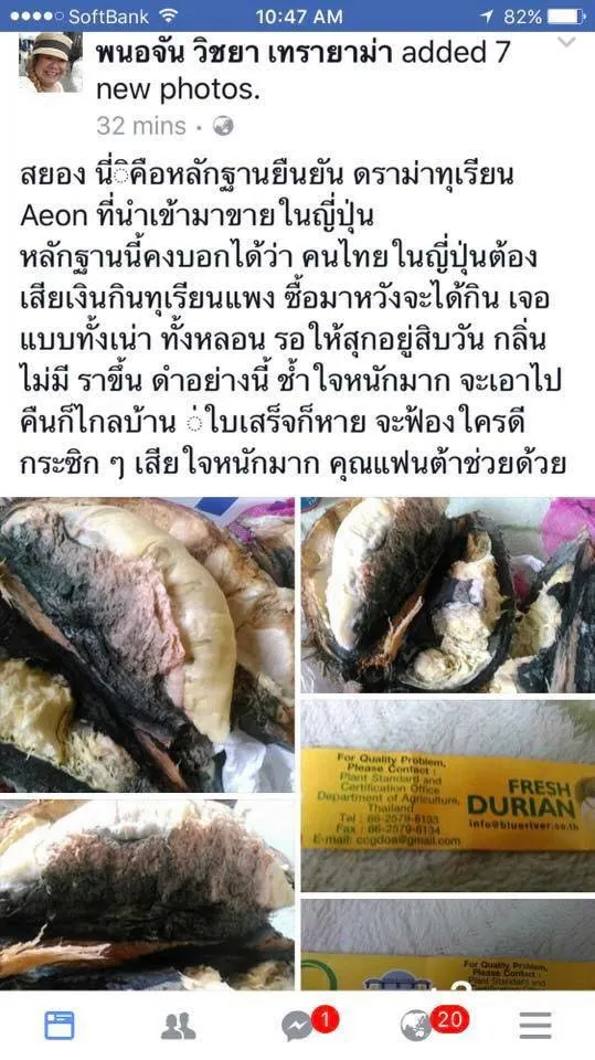ดราม่าทุเรียนไทย ในญี่ปุ่นยังไม่จบ ล่าสุดส่งภาพทุเรียนไทยเน่ามาจากญี่ปุ่นให้ดูกันแบบชัดๆ