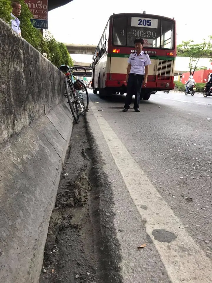 จากการตรวจสอบผู้เห็นเหตุการณ์เล่าว่าผู้บาดเจ็บได้ปั่นรถจักรยาน 2ล้อ มาถึงจุดเกิดเหตุในเลนซ้าย และได้เสียหลักล้อตกลงไปไหล่ถนนตัวของผู้บาดเจ็บจึงกระเด็นมาบนพื้นถนน ก่อนที่รถประจำทางสาย205 ที่วิ่งมาในเลนเดียวกันทับหมดสติ จึงขอเอาเหตุการณ์มาเตือนสติใครหลายๆคนที่ชอบมาปั่นจักรยานบนถนนในประเทศไทย ว่ามันอันตรายมากครับ..