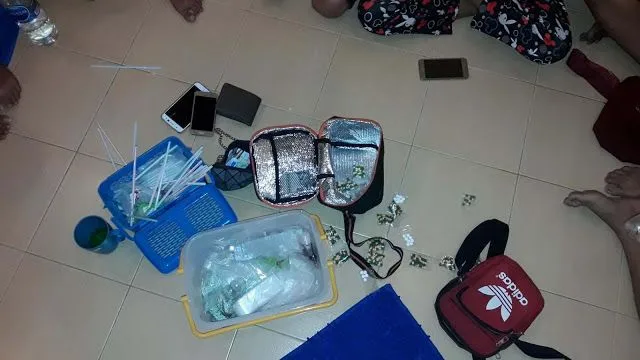 เมื่อเจ้าหน้าที่ตรวจค้นกลับพบของกลางอื้อ อาทิ ยาเม็ดเบ็นซ์เฮ็กซอล 500 เม็ด 4มีด้วยกัน 4 กระปุก รวมแล้ว เป็น 2,000 เม็ด , ยาน้ำ UNIRAX SYRUP 4 ขวด , ยาเม็ด PACMADOL INTER DRUGS 7 กระปุก 7,000 เม็ด, ยาเม็ดทินดอล 30 เม็ด 20 ถุง รวมเป็น 600 เม็ด , ปืนสั้น 1 กระบอก อุปกรณ์การเสพหลายชนิดวางอยู่ และถุงพลาสติดใสเพื่อสำหรับรรจุยา สร้างความตกใจแก่คนที่พบเห็นอย่างมาก นี่ยังเป็นเยาวชนอยู่เลยทั้งหญิงและชายเต็มห้อง
