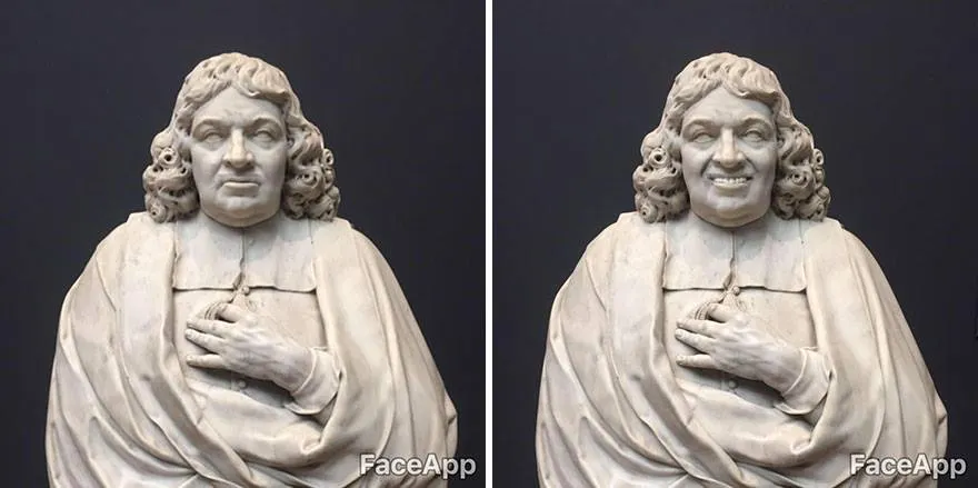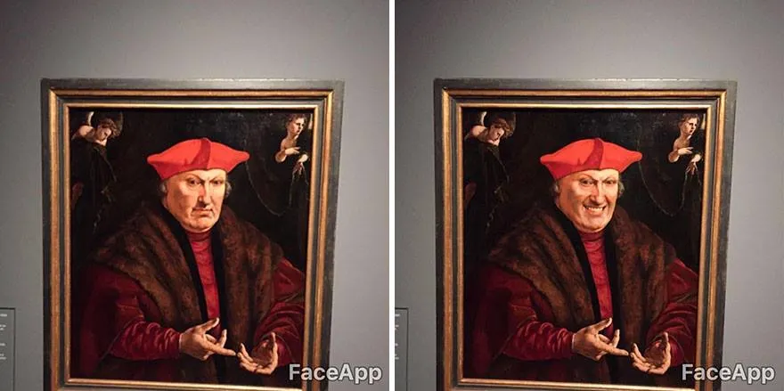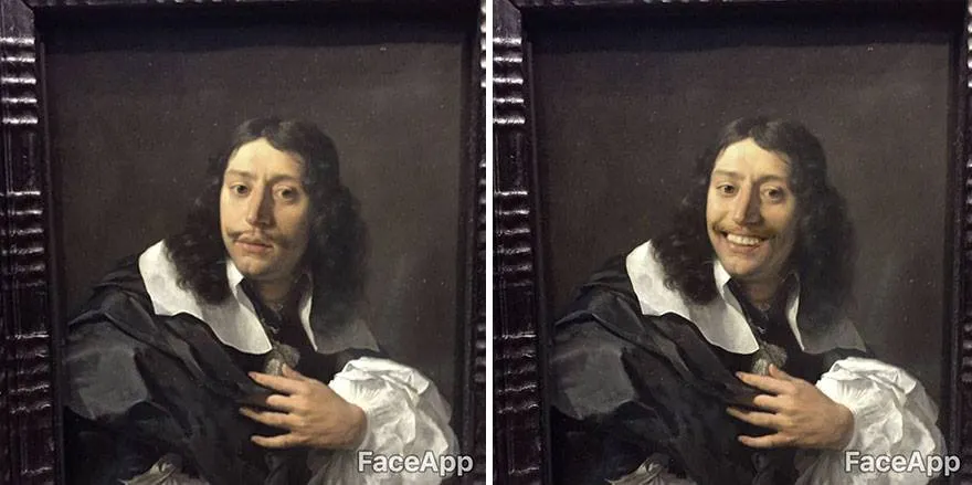 นาย Olly Gibbs ชาวอังกฤษ ไปเดินดูงานศิลปะที่ Rijksmuseum ในกรุงอัมสเตอร์ดัม ก็เลยเอามือถือมาถ่ายรูปงานศิลปะ แล้วใช้ Faceapp ทำให้มันยิ้มซะเลย