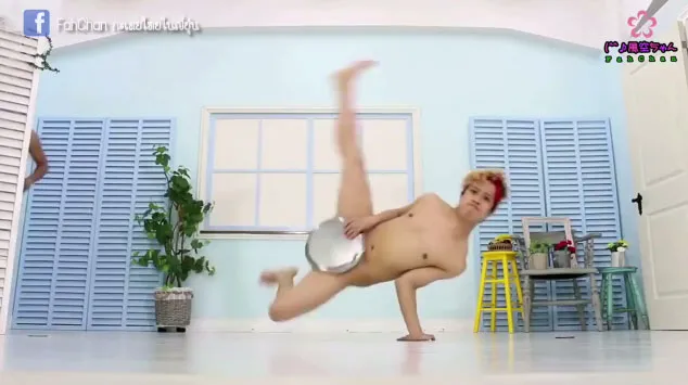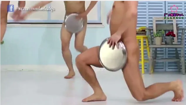 หนุ่มญี่ปุ่นโชว์เต้นเปลือยกายมีแค่ถาดใบเดียวปิด "ปีกาจู้" ใครมองทันบ้าง แคปมา 55555