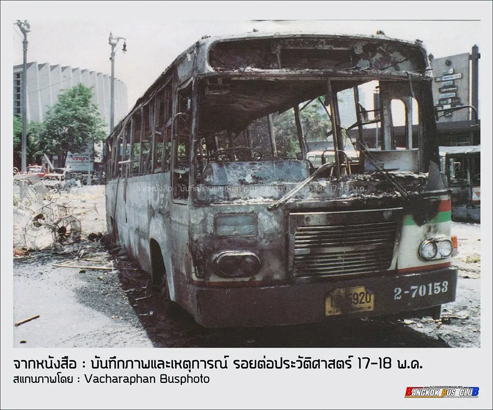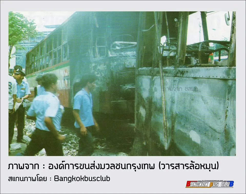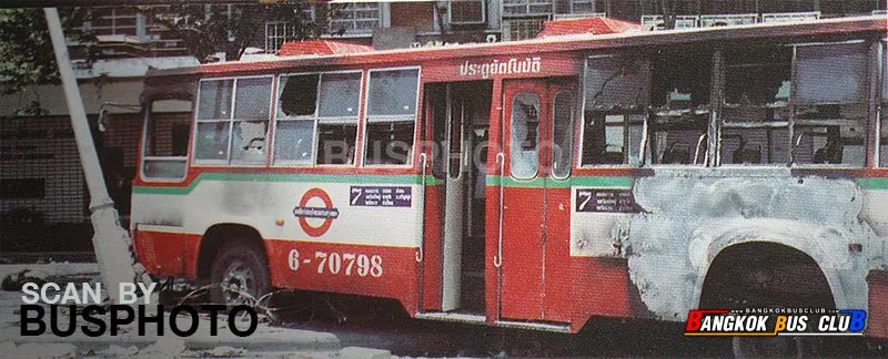 สาย 7 หมายเลขรถ 6-70798 ถูกเผาเสียหายอย่างหนักจากเ