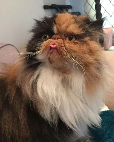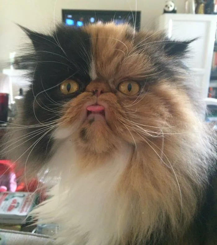 Molly เป็นแมวเปอร์เซีย 3 สี ที่เจ้าของปัจจุบันไปซื้อมาจากร้านขายสัตว์เลี้ยงที่ไม่ได้รับการเอาใจใส่ ตอนนั้นมันมีร่างกายที่ผอมแห้ง พวกเขาได้บำรุงร่างกายและรักษามันเป็นอย่างดี จนตอนนี้เวลาผ่านมา 5 ปี แล้ว มันกลายเป็นแมวที่มีชื่อเสียงในหมู่บ้าน มันคอยสร้างความบันเทิงให้กับทุกคนและชอบแลบลิ้นออกมา