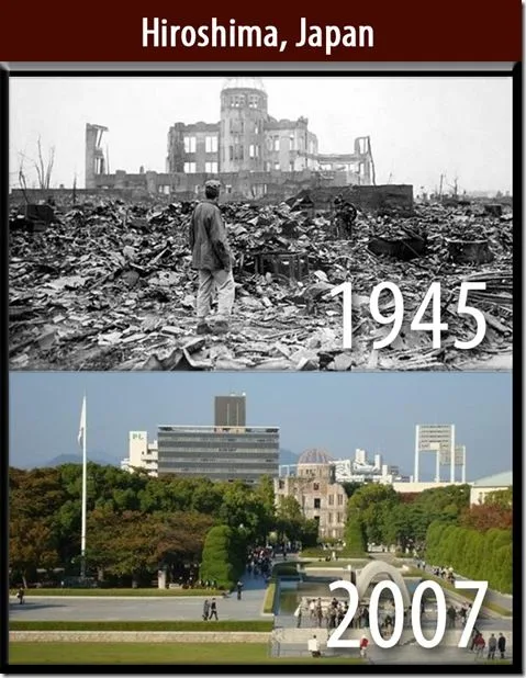 เราจะได้เห็นภาพของเมืองสำคัญๆ อย่าง London, Hiroshima, Dubai หรือกระทั่งกรุงเทพมหานครของไทยอีกด้วย ว่าแล้วก็ลองชมภาพเปรียบกับกันได้เลยครับ