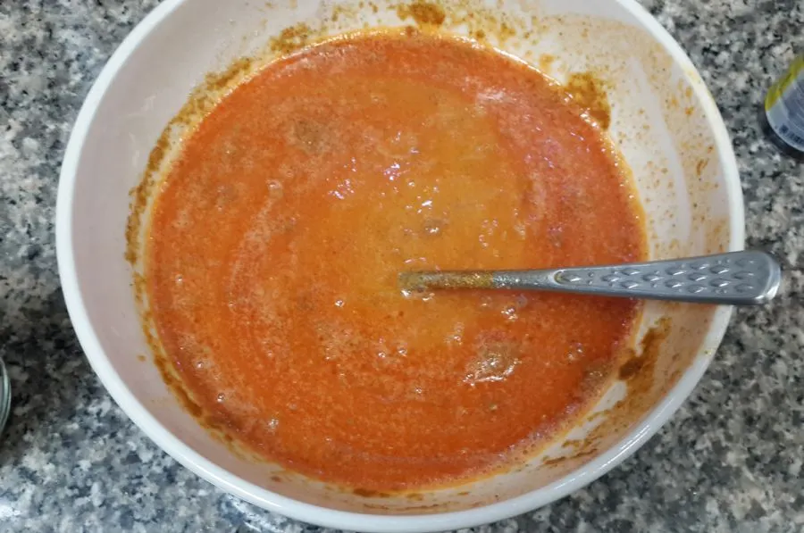 น้ำซอส - ไข่ไก่(ตอนที่ทำใช้5ฟอง) นมจืดคาเนชั่น ผง น้ำมันหอย ซอสพริก1ช้อนโต๊ะ ซีอิ้วขาว พริกไทยป่น ผงปรุงรสนิดนึง น้ำตาลนิดหน่อย น้ำมันพริกเผา ตีคนให้เข้ากัน ตรงนี้ชิมรสได้เลย ชอบรสไหน ขาดอะไรก็ปรุงเพิ่มไป