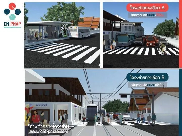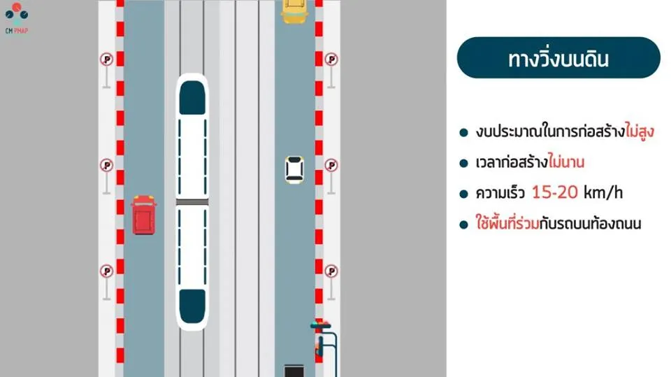 รูปแบบทางวิ่งบนดินระดับผิวถนน โครงการรถไฟฟ้ารางเบาเชียงใหม่ (Chiang Mai Public Transit Master Plan)