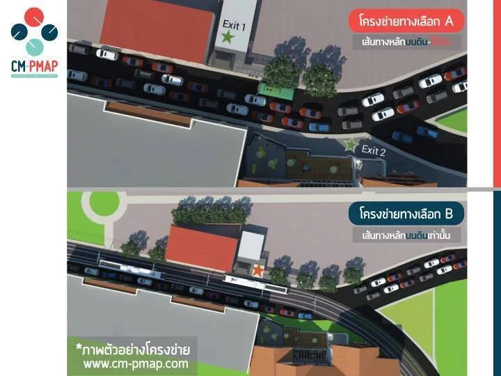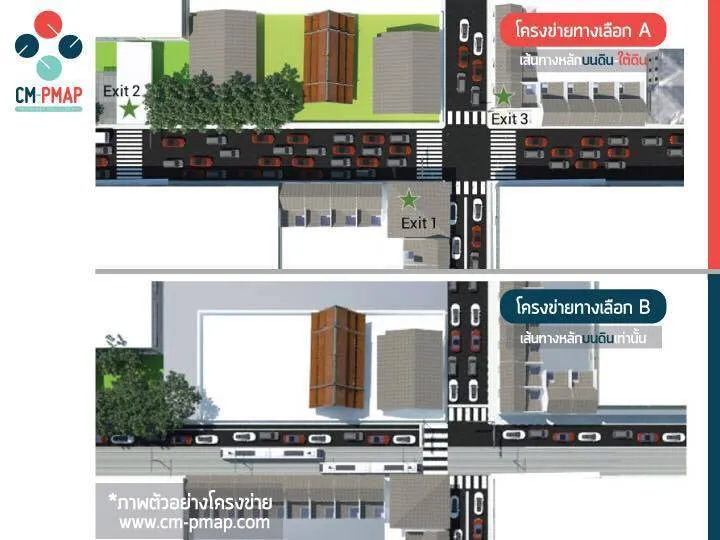 • โครงข่ายทางเลือก B รถไฟฟ้าวิ่งบนดินระดับผิวถนนตลอดเส้นทาง