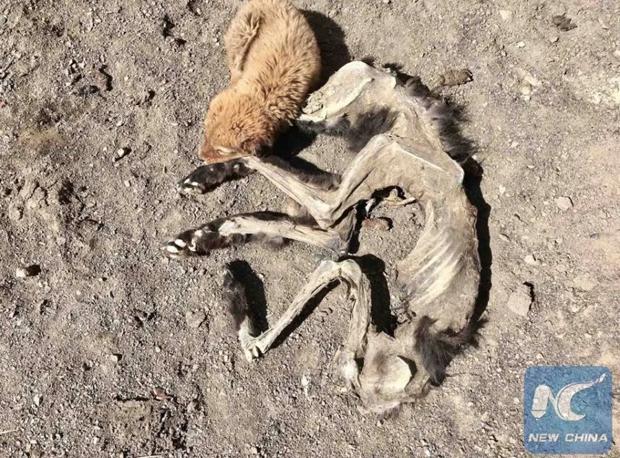 ภาพสุดสะเทือนใจของลูกหมาตัวหนึ่งที่ไม่ยอมห่างจากร่างไร้ลมหายใจของแม่หมา แม้ว่าจะเหลือแต่เพียงแค่กระดูกก็ตาม ภาพดังกล่าวถ่ายโดยผู้สื่อข่าวซินหัวในพื้นที่ทางตะวันตกเฉียงใต้ของจีน อย่างไรก็ตาม ยังไม่ทราบสาเหตุหรือระยะเวลาการตายของแม่หมาตัวนี้อย่างแน่ชัด