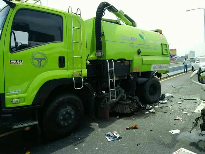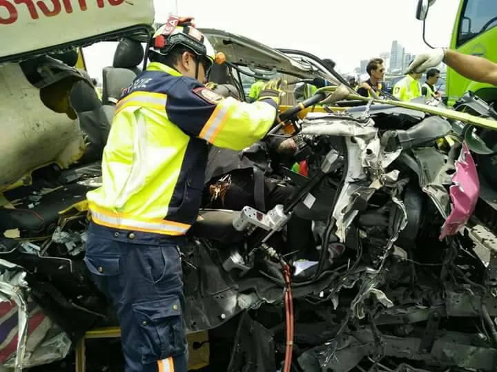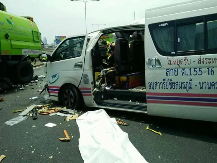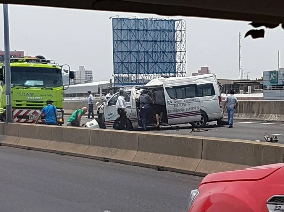 เจ้าหน้าที่ปิดการจราจร ทางยกระดับดอนเมืองโทลล์เวย์ “อุตราภิมุข” ทิศทาง ขาเข้า ลงดินแดง เคลื่อนย้าย ผู้บาดเจ็บ ผู้เสียชีวิต จากกรณี อุบัติเหตุ รถตู้รับจ้างสาธารณะ สาย ต.155 ข้างรถ ต.115-16 “กรุงเทพมหานคร-นวนคร” ทะเบียน 15-8852 กรุงเทพ ชนกับรถของ บริษัทฯ ที่เกิดเหตุมีผู้บาดเจ็บหลายคน ขณะเดียวกัน มีผู้เสียชีวิต 2 คน จากเหตุการณ์นี้