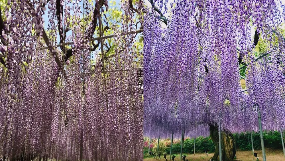 เมื่อเข้าสู่ฤดูร้อนต้นวิสทีเรียต้นนี้ตั้งอยู่ใน Ashikaga Flower Park จังหวัดโทะชิงิ ประเทศญี่ปุ่น จะเริ่มเบ่งบานดอกสีสันสวยงามออกมาต้อนรับนักท่องเที่ยว ต้นต้นวิสทีเรียขนาดใหญ่ภายในสวนแห่งนี้มีอายุมากมากกว่า 100ปี ปัจจุบันขนาดของต้นครอบคลุมพื้นที่กว่า 1,990 ตารางเมตร