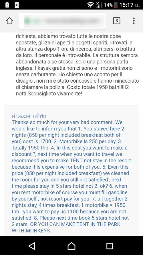 ลูกค้าวิจารณ์หลังเข้าพักรีสอร์ท เจอตอบกลับหน้าหงาย!!