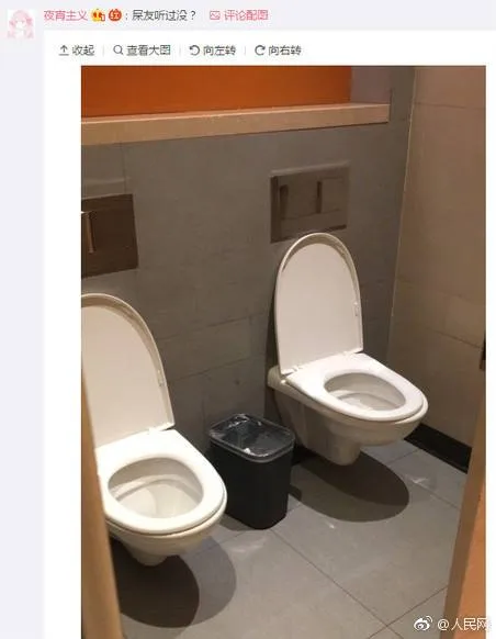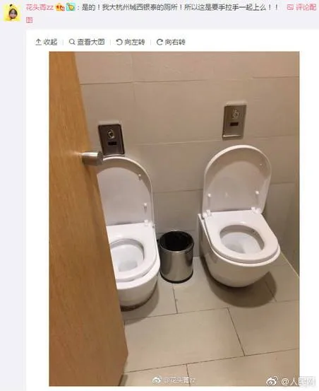 เมื่อเร็วๆนี้ ชาวเน็ตจีนต่างก็ฮือฮากับห้องน้ำโถชักโครกคู่ในห้างสรรพสินค้าแห่งหนึ่งในหางโจว เนื่องจากในห้องน้ำแต่ละห้องจะติดตั้งชักโครก 2 อัน โดยไม่มีกำแพงอะไรกั้นไว้เลย