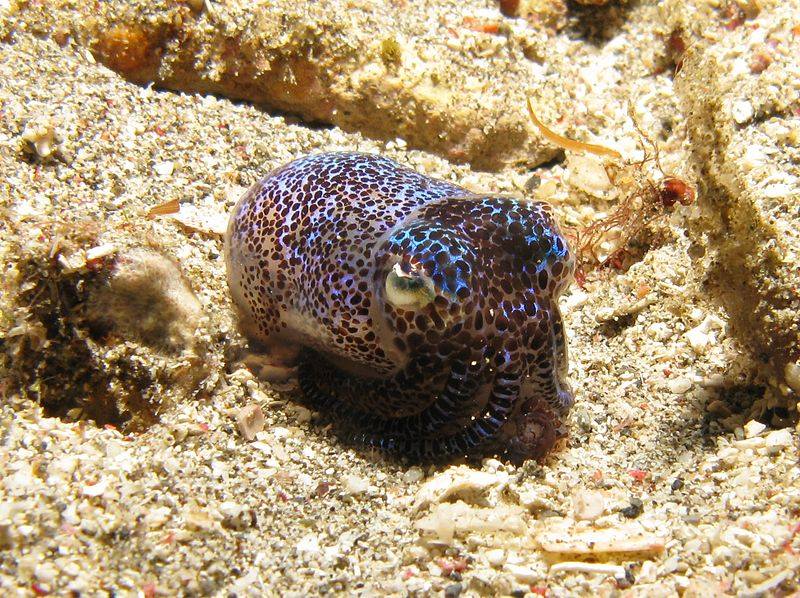 Euprymna berryi หรือรู้จักกันในชื่อ humming-bird bobtail squid พบได้ในน่านน้ำเขตร้อนแถบอินโดแปซิฟิก เป็นสายพันธุ์หมึกขนาดเล็กตัวโตเต็มที่มีความยาวประมาณ 3-5 เซนติเมตร ตัวเมียจะมีขนาดใหญ่กว่าตัวผู้ เป็นหมึกที่มีสีสันสวยงามอวัยวะเรืองแสงของมันนั้นมักเปล่งแสงออกมายามค่ำคืนซึ่งเป็นช่วงที่มันออกล่าเหยื่อ ส่วนกลางวันนั้นพวกมันจะฝังตัวอยู่ในทราย