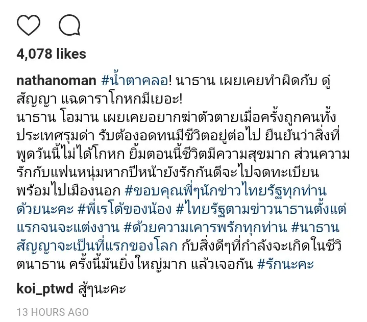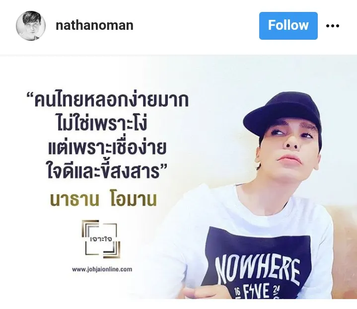 นาธาน โอมาน เผยเคยอยากฆ่าตัวตายเมื่อครั้งถูกคนทั้งประเทศรุมด่า รับต้องอดทนมีชีวิตอยู่ต่อไป ยืนยันว่าสิ่งที่พูดวันนี้ไม่ได้โกหก ยิ้มตอนนี้ชีวิตมีความสุขมาก ส่วนความรักกับแฟนหนุ่มหากปีหน้ายังรักกันดีจะไปจดทะเบียนพร้อมไปเมืองนอก #ขอบคุณพี่ๆนักข่าวไทยรัฐทุกท่านด้วยนะคะ #พี่เรโด้ของน้อง #ไทยรัฐตามข่าวนาธานตั้งแต่แรกจนจะแต่งงาน #ด้วยความเคารพรักทุกท่าน #นาธานสัญญาจะเป็นที่แรกของโลก กับสิ่งดีๆที่กำลังจะเกิดในชีวิตนาธาน ครั้งนี้มันยิ่งใหญ่มาก แล้วเจอกัน #รักนะคะ