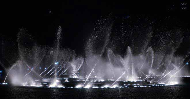 หนึ่งในน้ำพุที่สวยงามที่สุดในโลกแห่งนี้ได้รับการออกแบบโดยบริษัท WET Design จากรัฐแคลิฟอร์เนีย ประเทศสหรัฐอเมริกา ในการแสดงแต่ละรอบนั้นจะมีแสง สี เสียงสุดอลังกาลให้กับนักท่องเที่ยวได้ชม โดยในการแสดงนั้นจะใช้ไฟรวมกว่า 6,600 ดวง โปรเจคเตอร์สีอีกกว่า 50 ตัว ควบคุมการแสดงและระบบต่างๆ ด้วยคอมพิวเตอร์ทั่้งหมด การแสดงน้ำพุแห่งนี้ถือเป็นน้ำพุเต้นระบำที่ใหญ่ที่สุดในโลกอีกด้วยน่ะครับ