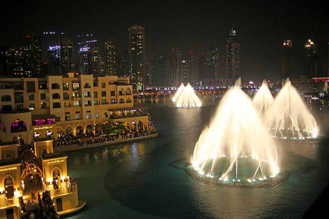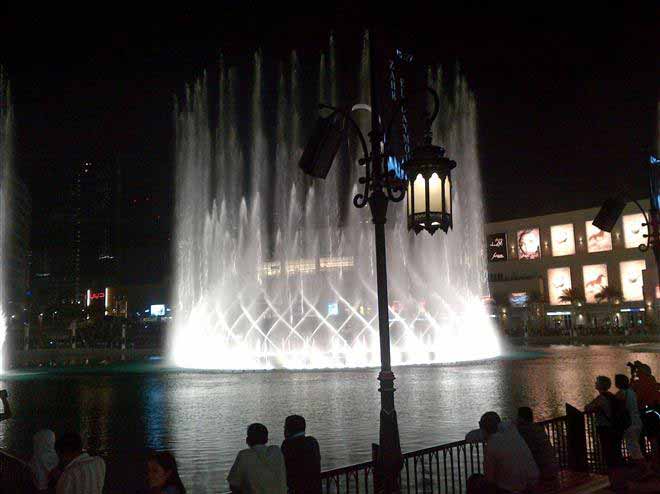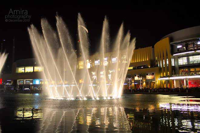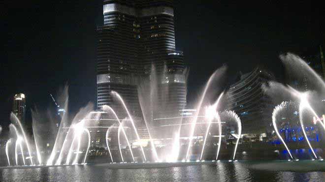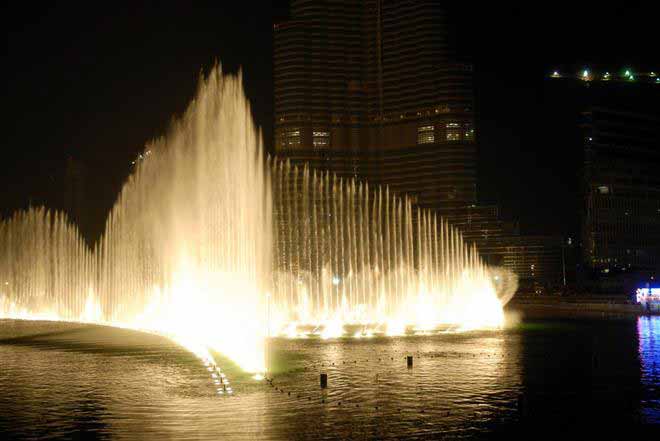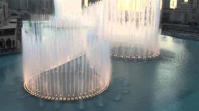 น้ำพุที่ว่านี้ก็คือ The Dubai Fountain หรือในชื่อ น้ำพุแห่งดูไบ ตั้งอยู่ในทะเลสาบบุรจญ์คาลิฟา ซึ่งเป็นสูญกลางของเมืองดูไบ ล้อมรอบไปด้วยบรรดาตึกที่มีชื่อเสียง อย่างเช่น บุรจญ์เคาะลีฟะฮ์ตึกที่สูงที่สุดในโลก น้ำพุแห่งนี้มีความยาวราว 250 เมตร เทียบได้กับสนามฟุตบอล 2 สนามรวมกันเลยทีเดียว สามารถพ่นน้ำปริมาณ 83,000 ลิตร ขึ้นไปในอากาศได้สูงกว่า 150 เมตร และสามารถมองเห็นได้ในระยะทางที่ไกลกว่า 300 กิโลเมตรจากที่สูง