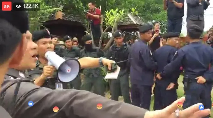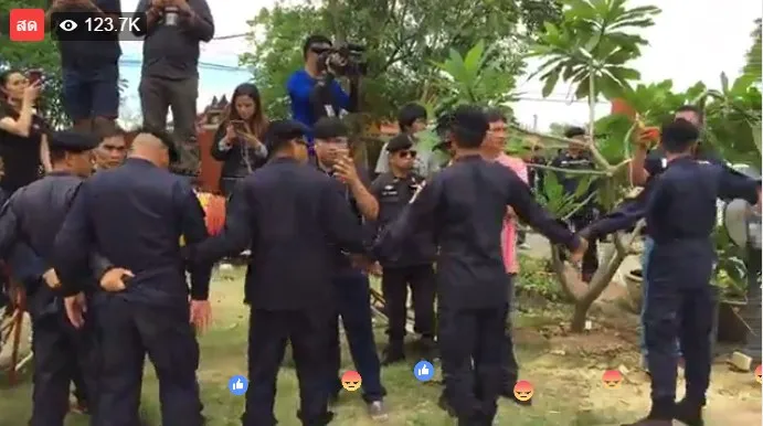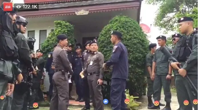 เจ้าหน้าที่ยืนคุ้มกันเข้ม ขณะที่เปรี้ยว เอิร์น แจ้ เข้าไปทำแผนในห้องพักรีสอร์ท