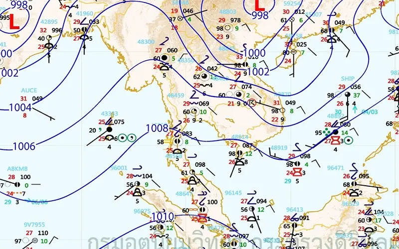 กรมอุตุนิยมวิทยา พยากรณ์อากาศ 24 ชั่วโมงข้างหน้า คาดบริเวณด้านตะวันตกของภาคเหนือ และภาคกลาง ภาคตะวันออก ภาคใต้ รวมทั้งกรุงเทพมหานครและปริมณฑล เริ่มมีฝนเพิ่มมากขึ้น