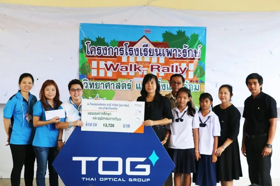 บริษัท ไทยออพติคอล กรุ๊ป จำกัด (มหาชน) หรือ TOG ร่วมมือกับองค์การบริหารส่วนตำบลละหาร จ.นนทบุรี จัดกิจกรรม “TOG WALK RALLY แบ่งปันความรู้สู่เยาวชน” หนึ่งในโครงการเพาะรักษ์ เพื่อส่งเสริมการเรียนรู้ด้านวิทยาศาสตร์และสิ่งแวดล้อมให้แก่เยาวชน โดยมีคณะผู้บริหาร TOG มอบทุนการศึกษาและอุปกรณ์การเรียนให้แก่คณะครูอาจารย์และนักเรียน โรงเรียนวัดศรีเขตนันทาราม จ.นนทบุรี