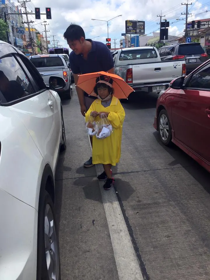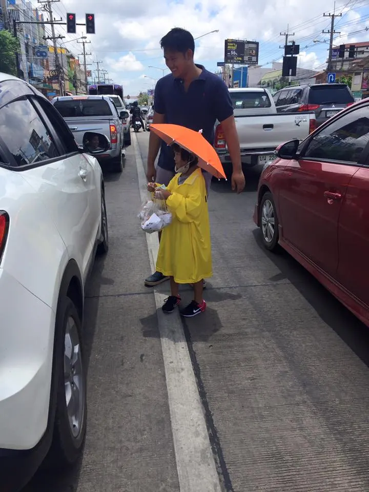 เดินขายของสี่แยก (พ่อเดินประกบ) ในเมื่อบทเรียนในโรงเรียนทำให้ลูกเบื่อหน่าย เพราะฉะนั้นลูกก็ต้องเจอบทเรียนชีวิตจริง