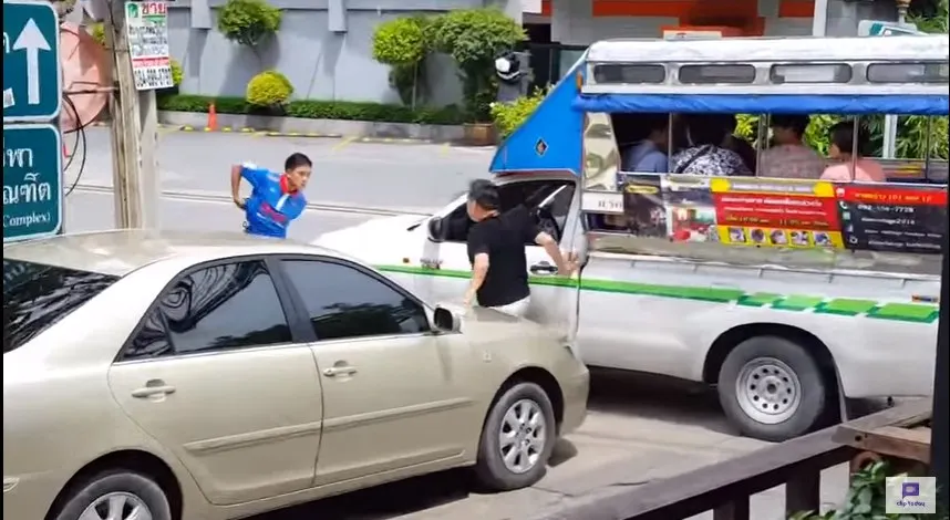 มีคนได้บันทึกคลิปเหตุการณ์ทะเลาะวิวาทกันบนถนนเส้นหนึ่งเส้นทางใกล้ๆมัน ม.รัตนบัณฑิต (RBAC) โดยรถสองแถวที่มีผู้โดยสารอยู่เต็มคัน คนขับได้ลงมาเคลียร์กับ คนขับรถเก๋งสีทอง(เสื้อดำ) และเถียงกันต่างฝ่ายต่างไม่ยอมคิดว่าตัวเองถูก ชายเสื้อดำเกือบจะกระโจนใส่คนขับสองแถว แต่แต่ต้องชะงักเมื่ออีกฝ่ายมีอาวุธ ทำให้ชายเสื้อดำที่ขับเก๋งสีทองยอมถอยก่อน คนขับสองแถวก็ไม่ได้ทำร้ายพี่เสื้อดำแต่อย่างใด ใจเย็นๆนะครับพี่ กล้องที่บันทึกชัดมากครับ