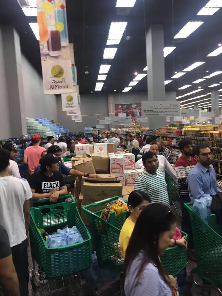 ประชาชนชาวกาต้าร์เริ่มแพนิก แห่ไปซุปเปอร์มาร์เก็ตเพื่อตุนอาหาร และสินค้าอุปโภคบริโภคที่จำเป็นกับชีวิต หลังจากที่ซาอุดิ อาราเบียปิดชายแดนที่ติดต่อกันทำให้รถบรรทุกที่ขนอาหาร และสินค้าต่างๆเข้ากาต้าร์หลายพันคันต้องจอดสนิทอยู่ที่ชายแดน