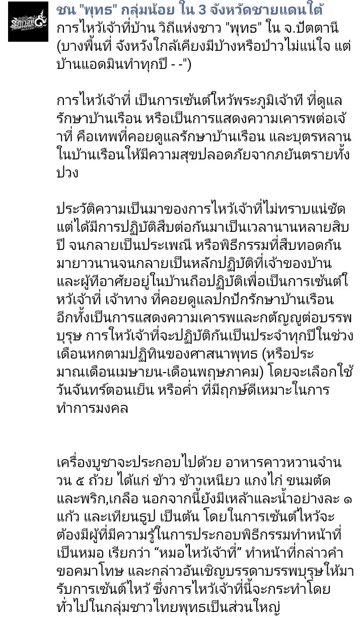 หมอพิธี และ "พิธีไหว้เจ้าที่" ความเชือของชาวสวนยางและชาวนาภาคใต้
