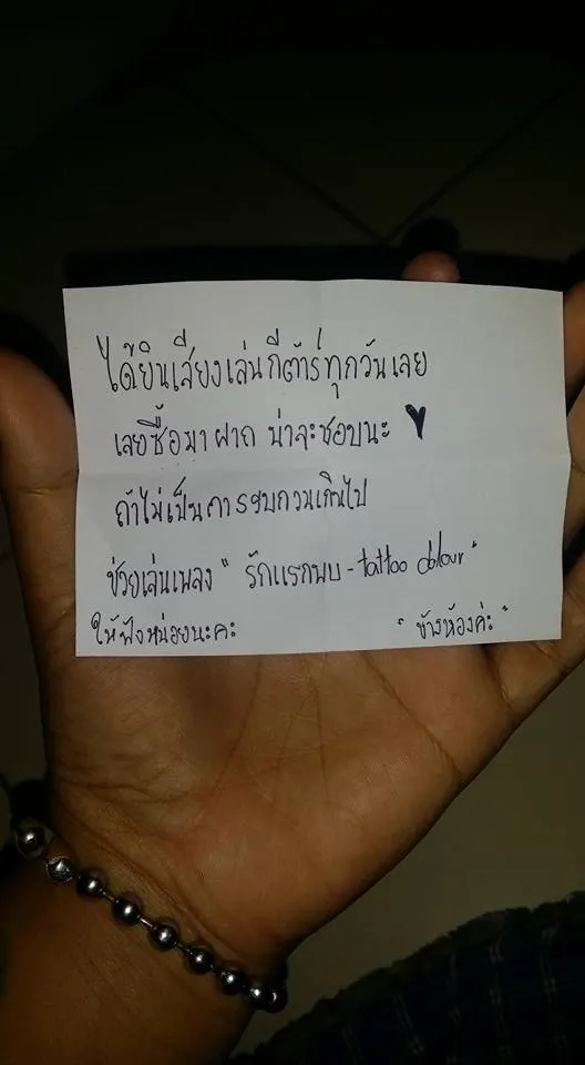 ในกระดาษโน้ต ไม่ได้เขียนมาด่าที่เล่นเพลงส่งเสียงไปถึงนอกห้อง แต่มีข้อความว่า